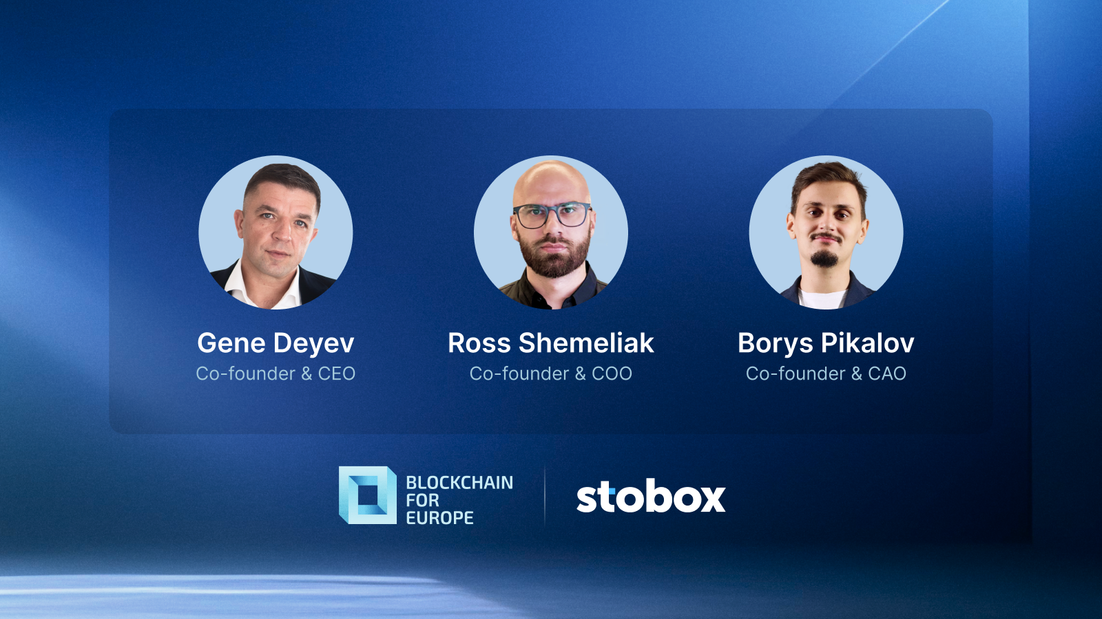 Founders of Stobox Ross Shemeliak, Gene Deyev, and Borys Pikalov are joining the association as experts and official members of Stobox to contribute to the main agenda of the Blockchain for Europe.