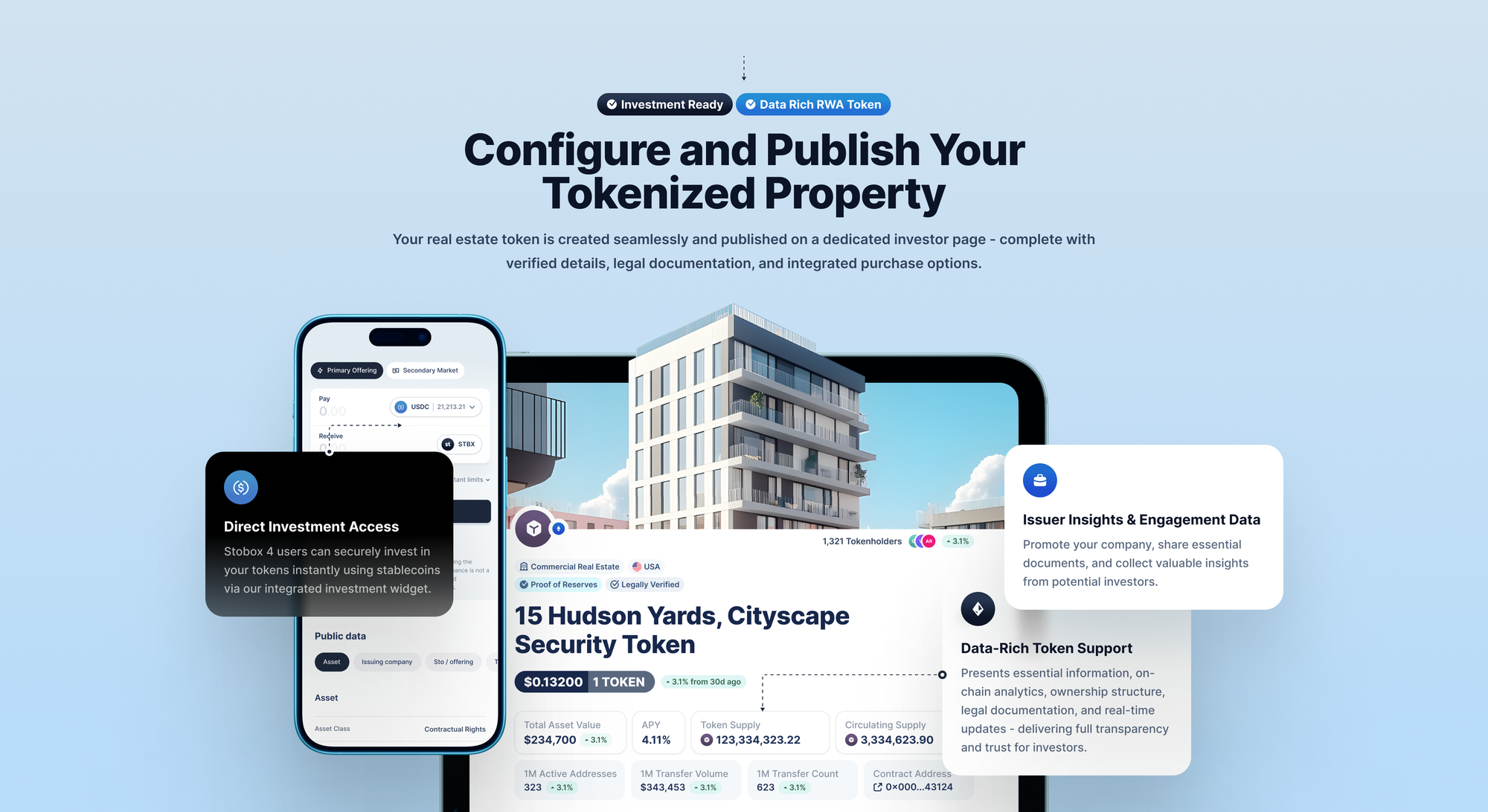 The Stobox White-Label Issuer Page tools enable projects to create professional, branded participant portals with integrated documentation, videos, and marketing materials that streamline the participation process while maintaining regulatory compliance.