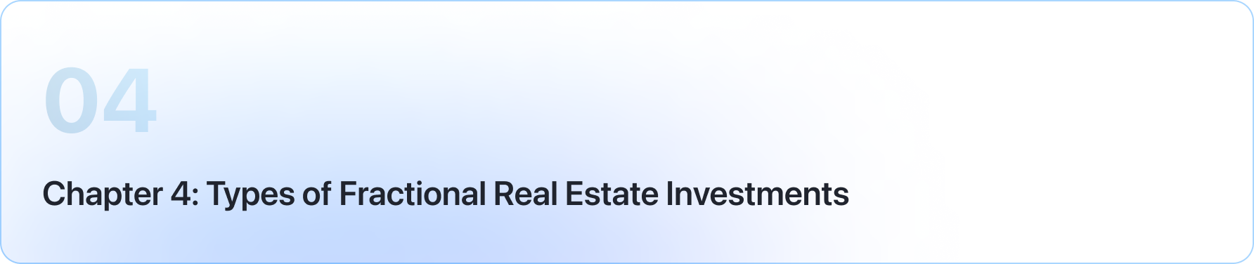 Fractional real estate ownership is not a one-size-fits-all proposition; it spans a variety of property types, each with its unique characteristics and investment potential. In this chapter, we'll explore the different types of properties commonly involved in fractional ownership, providing insights to help investors make informed decisions.