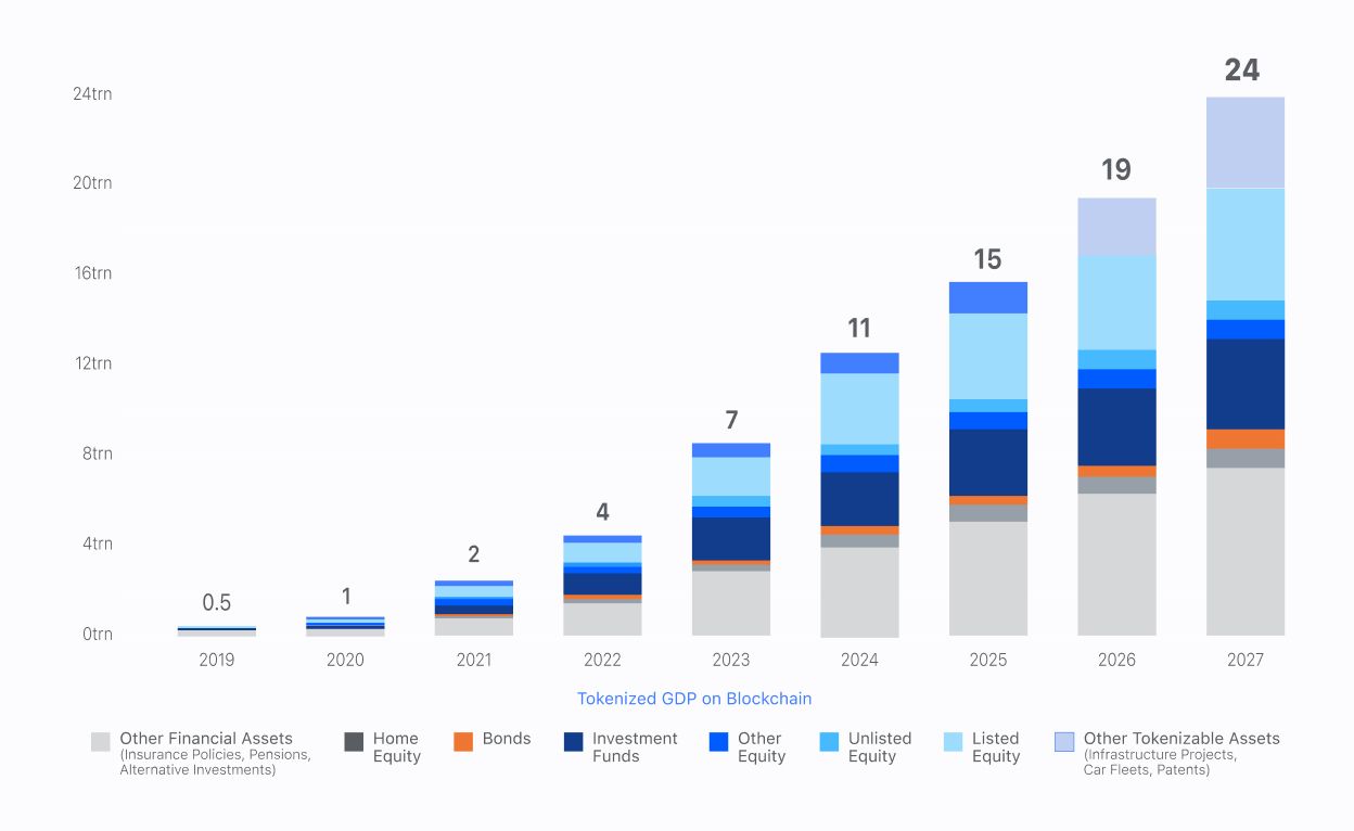 Projected Tokenized Market Volume by 2027 in $trn by asset class